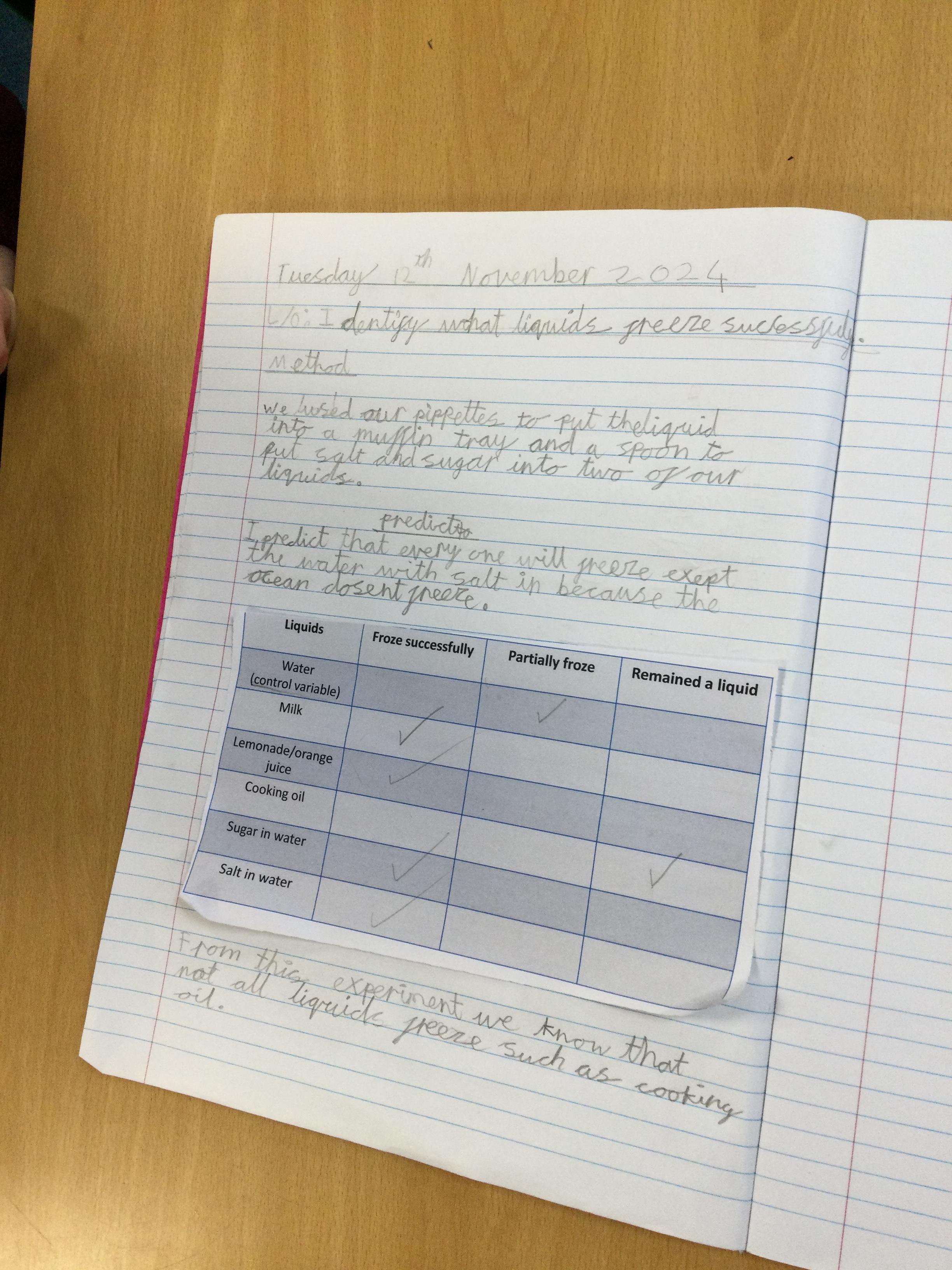We have been rather busy this week in Barley class! The children carried out a freezing experiment where they were able to determine whether all liquids freeze or not. Pupils utilised their scientific language through partner and class discussions. Pupils recorded their method, prediction, results and conclusion in their books and presented their findings to the class. The children conduct experiments every science lesson to support their growing knowledge and understanding. On Wednesday, the children learnt basic rules in netball, that they were then able to practise and develop. On Thursday, we learnt a French song! On Friday afternoon we completed British Values and Children In Need activities. The British Values activity is outlined under 'subjects'.