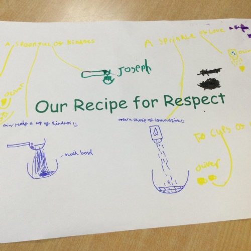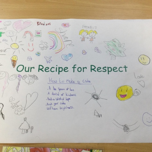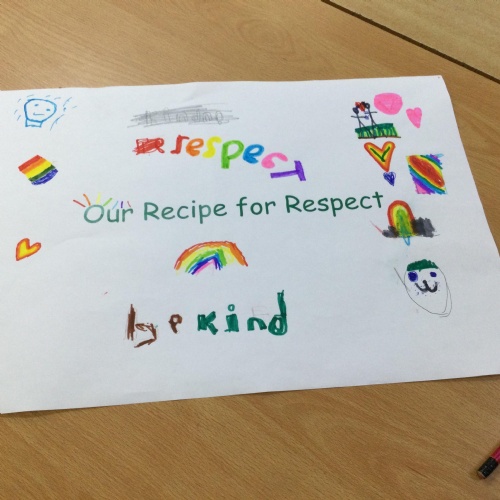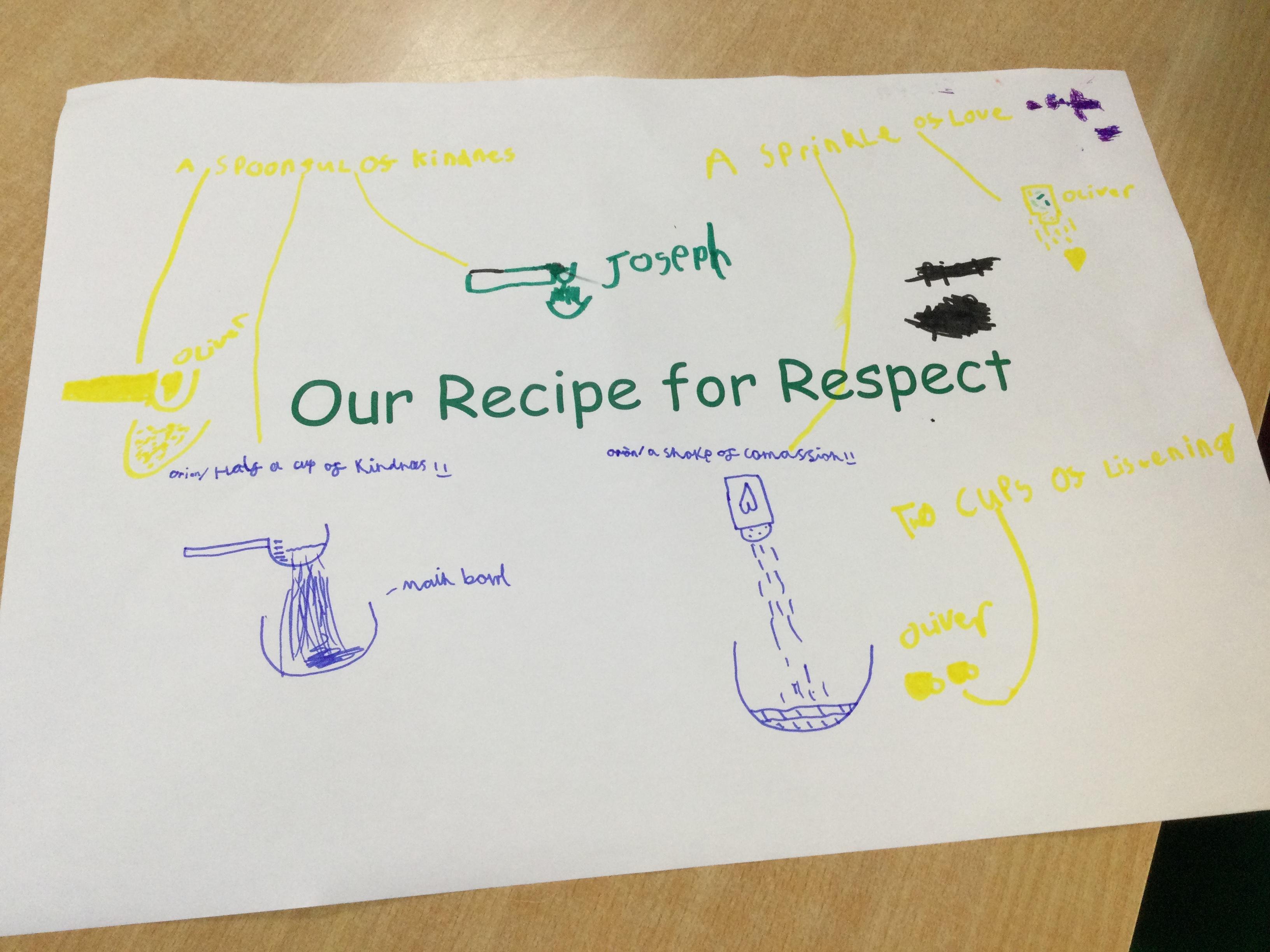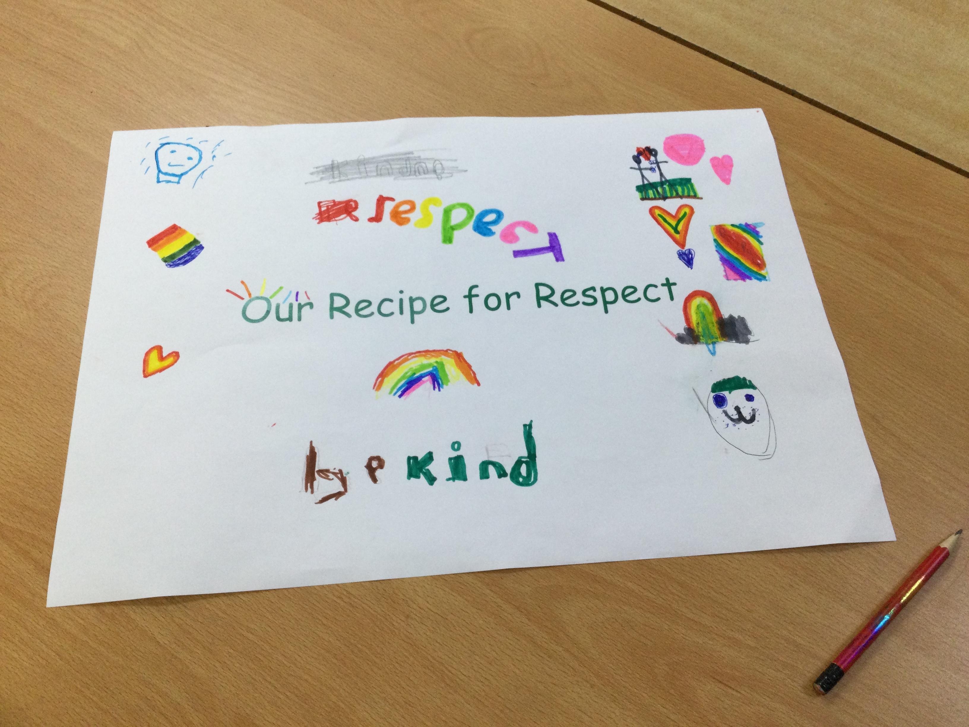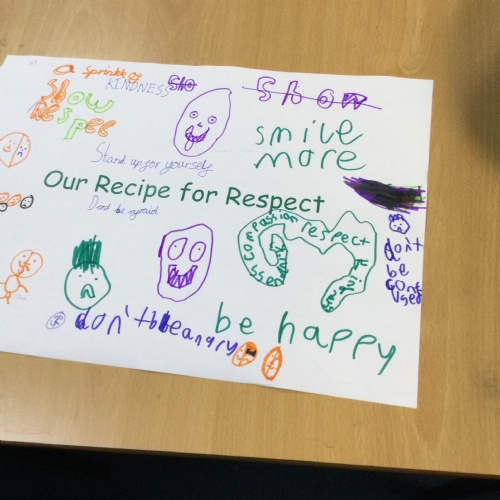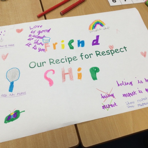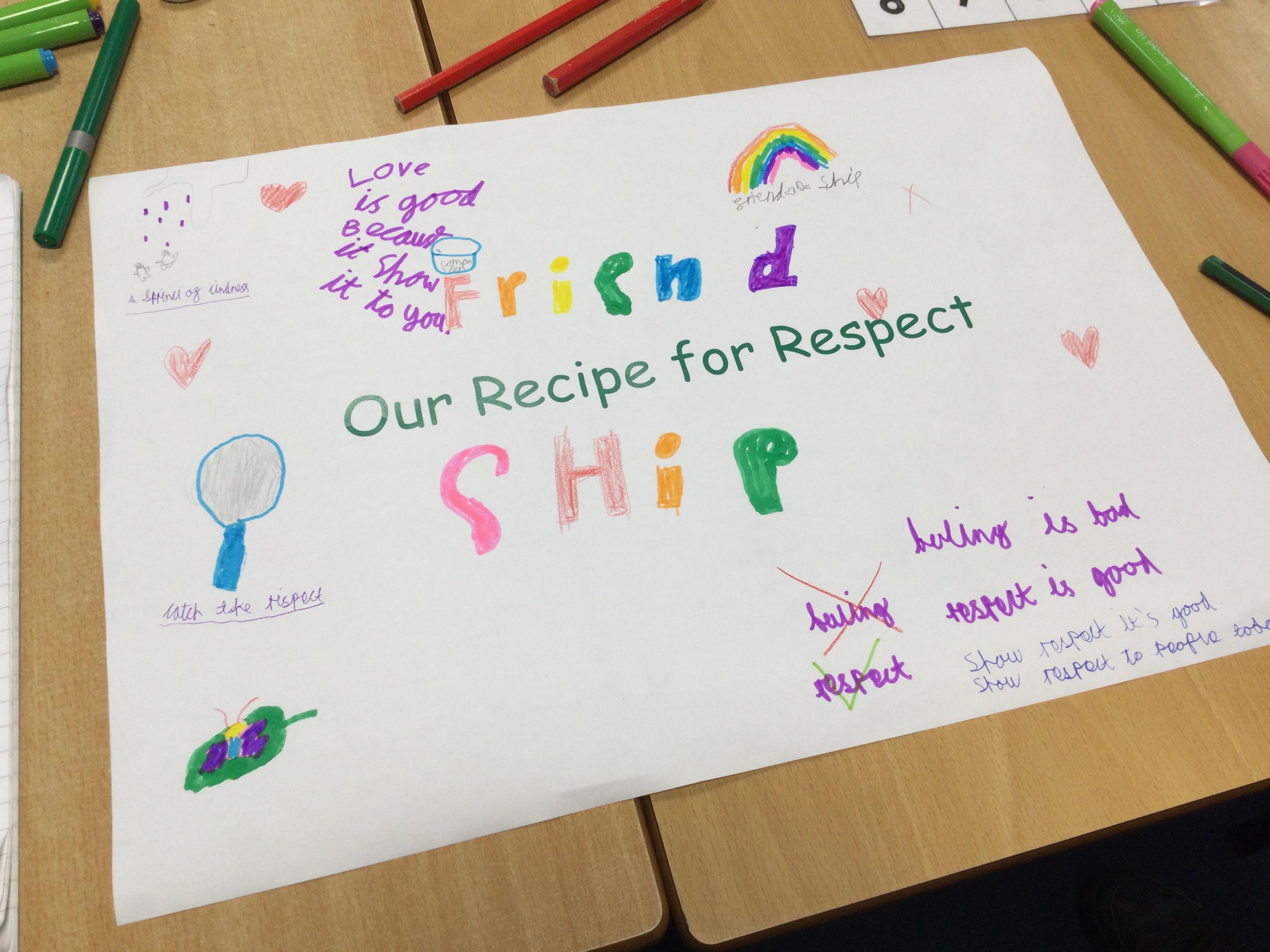 The children thought hard about respect and what this looks like. We played a scenario game which the children enjoyed and then the children worked in small groups to make their ‘recipe for respect’ poster.