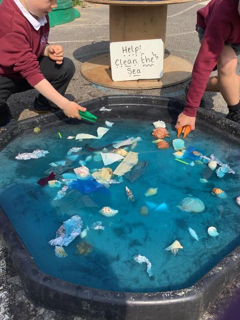 In Maize Class we were reading ‘Commotion in the Ocean’ and we were learning about ocean pollution. We learnt about why we must keep our Oceans clean and had a go at cleaning our ocean.