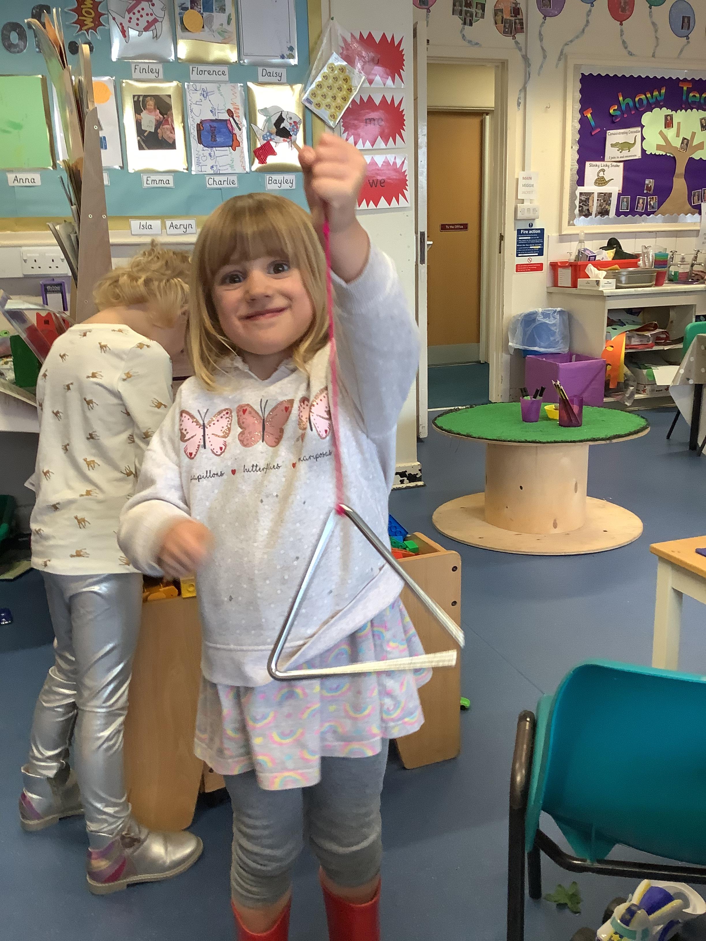 Maize class enjoyed making their own music to the beat of the song 'Jumping up and down Shout Hosanna'.