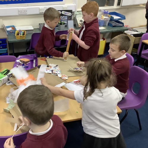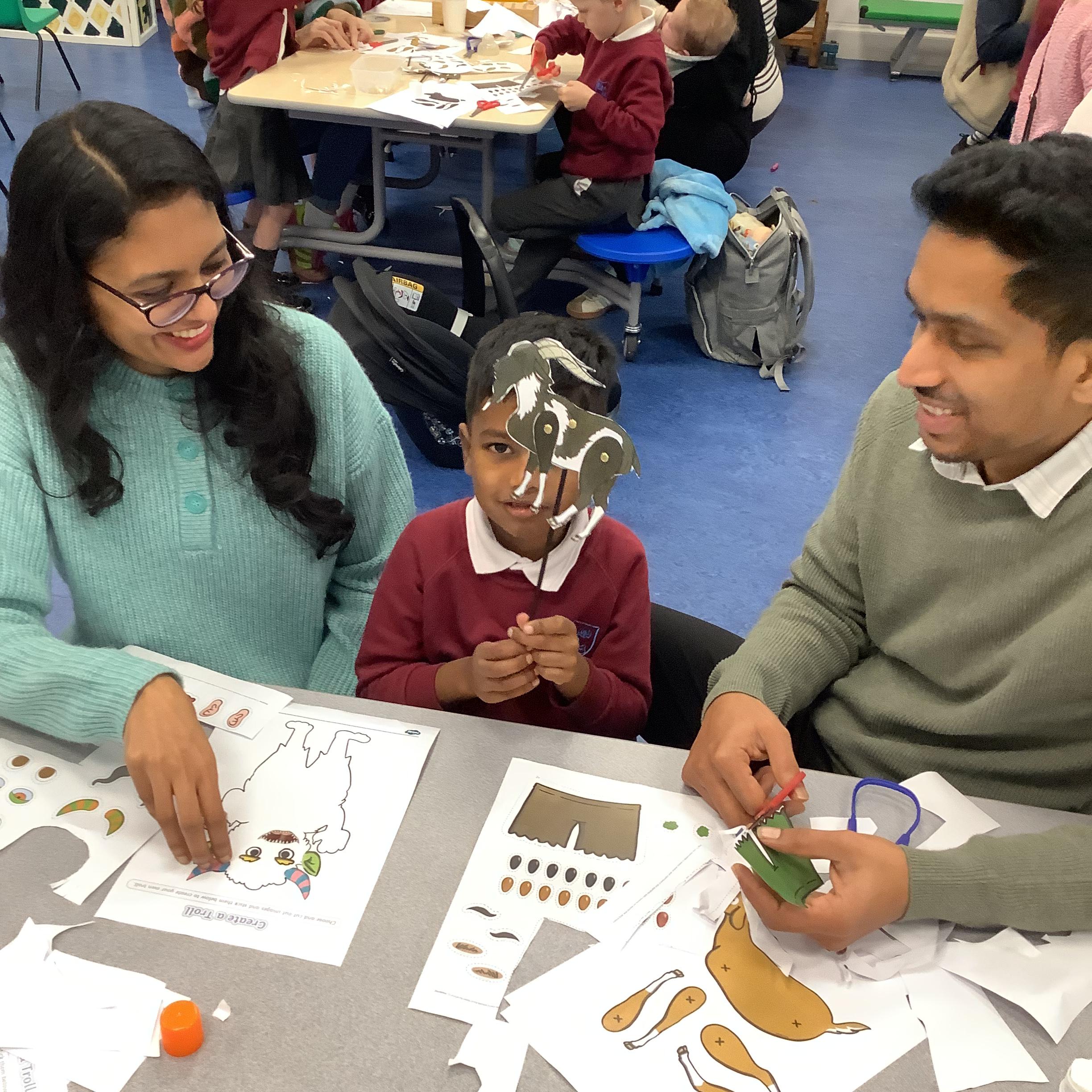On Thursday we had our family learning day, making some billy goat and troll puppets to put on a class puppet show!